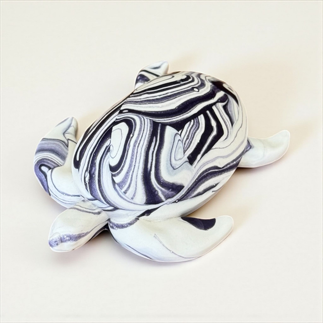 Introducing our adorable Baby Turtle crafted from Jesmonite with a stunning unique marble pattern. Whether displayed on a shelf, desk, or mantel, this Baby Turtle is a delightful addition to any collection.