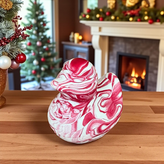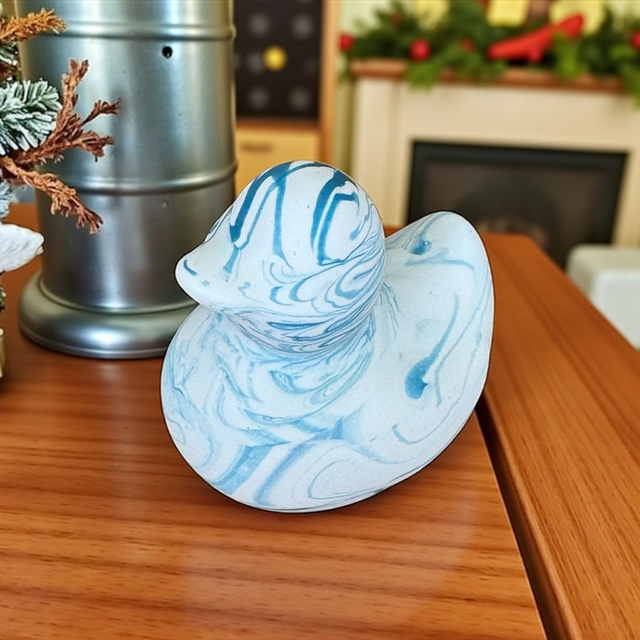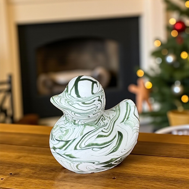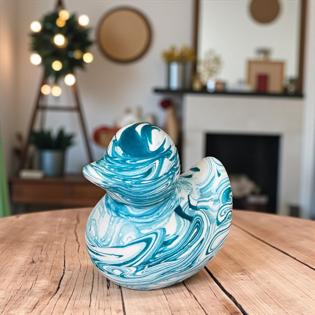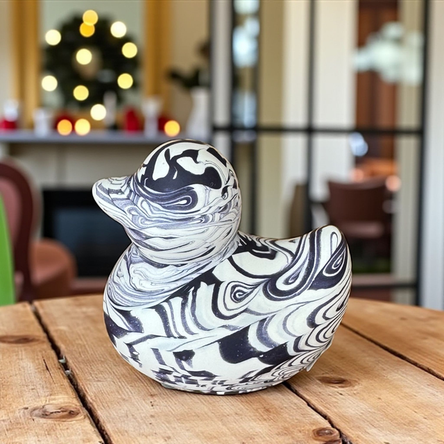 Introducing our stunning Jesmonite duck, showcasing a unique marble pattern that adds elegance and sophistication to any decor.