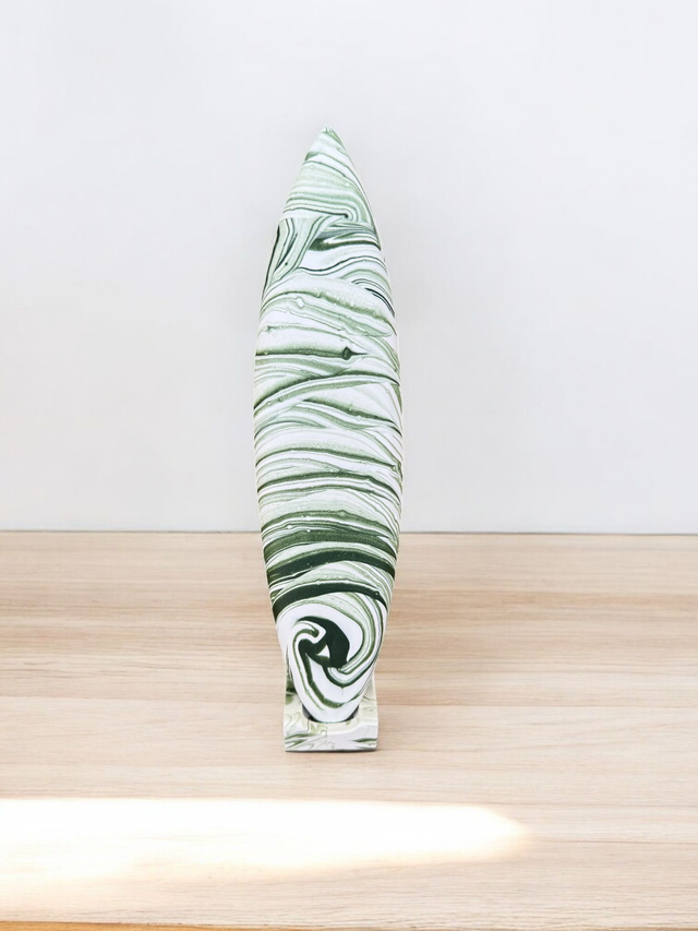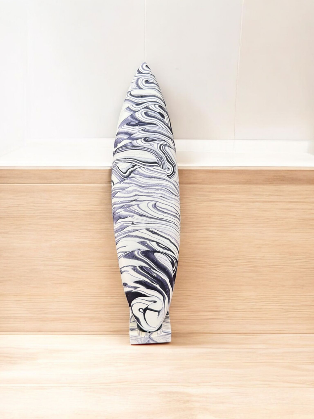 Elevate your home decor with our stunning Jesmonite surfboard with stand. Crafted with a marble design, this unique piece brings a touch of elegance to any space. Ideal for displaying in living rooms, bedrooms, or home offices, this decorative surfboard adds a chic and modern flair to your interior design. Made with high-quality materials, this stylish accessory is both durable and eye-catching. Whether placed on a shelf, mantel, or console table, this surfboard with stand is sure to make a statement in your home.